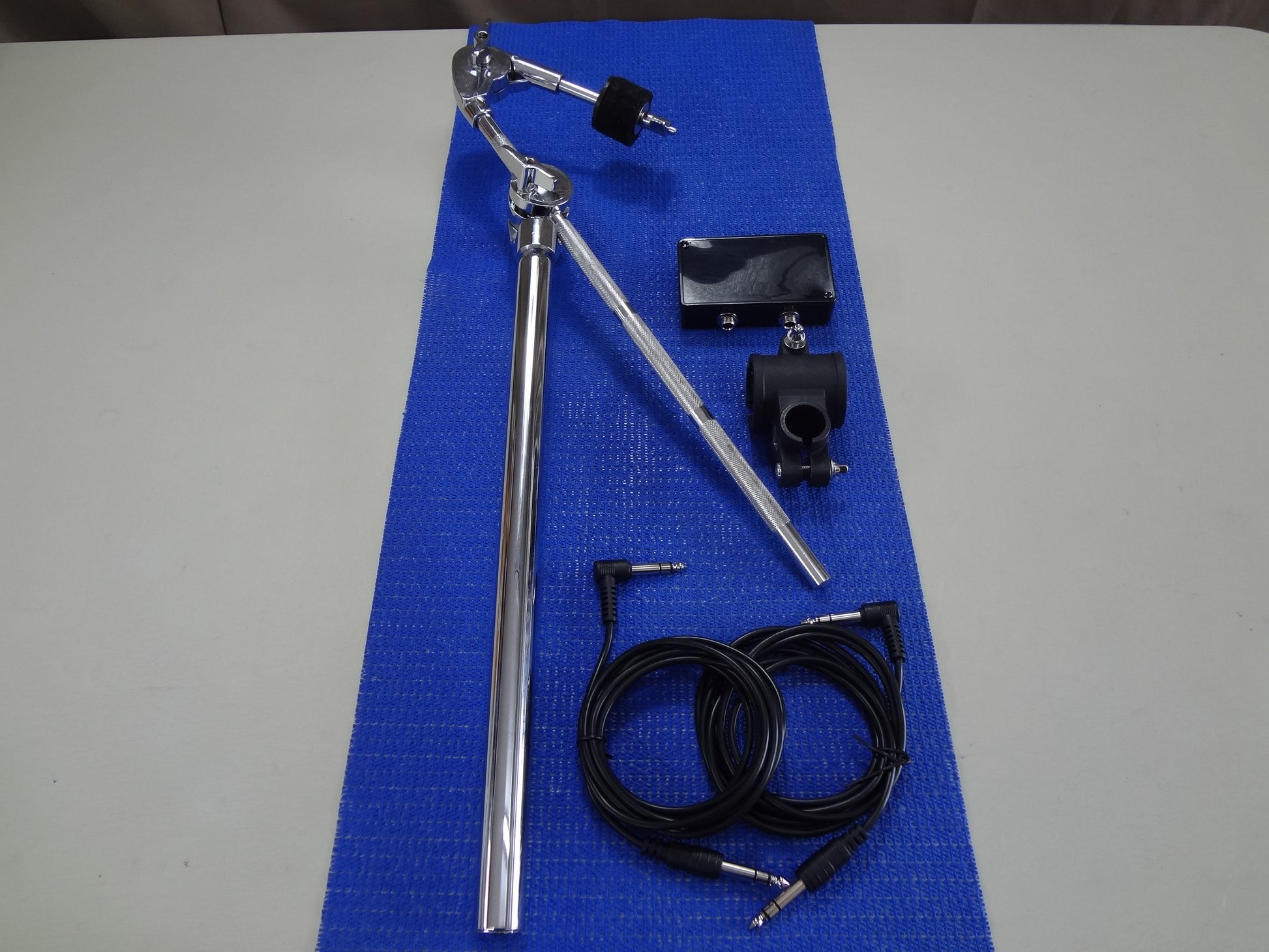 A new Lemon 15'' electronic crash cymbal add on pack.It consists of a 15'' two zone crash cymbal with choke, a full size boom arm, rack mounting clamp, splitter box and cables.