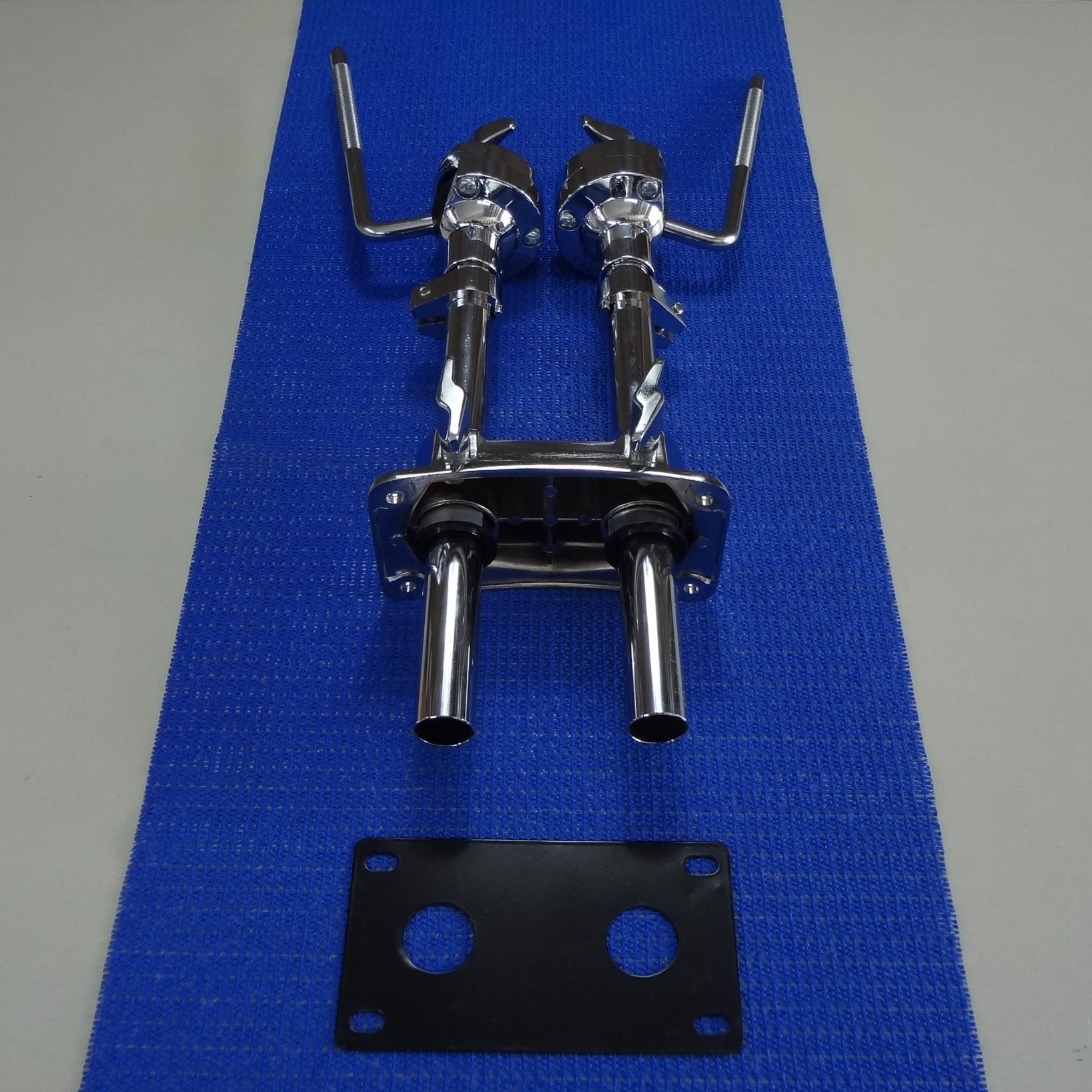 A new chrome double tom mount L-rod/ long the combination lets you mount the high and mid tom from the bass drum, the combo includes.