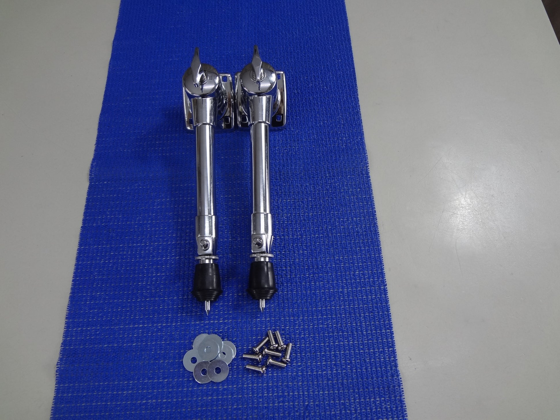A new set of chrome bass drum spurs S-3 model. A nice tidy chrome finish that could be used as a replacement set.
