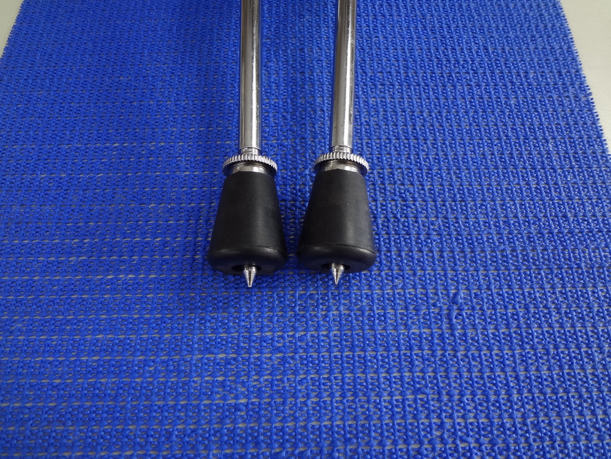 A new set of chrome bass drum spurs S-14model. A nice tidy chrome finish that could be used as a replacement set or for a new build.