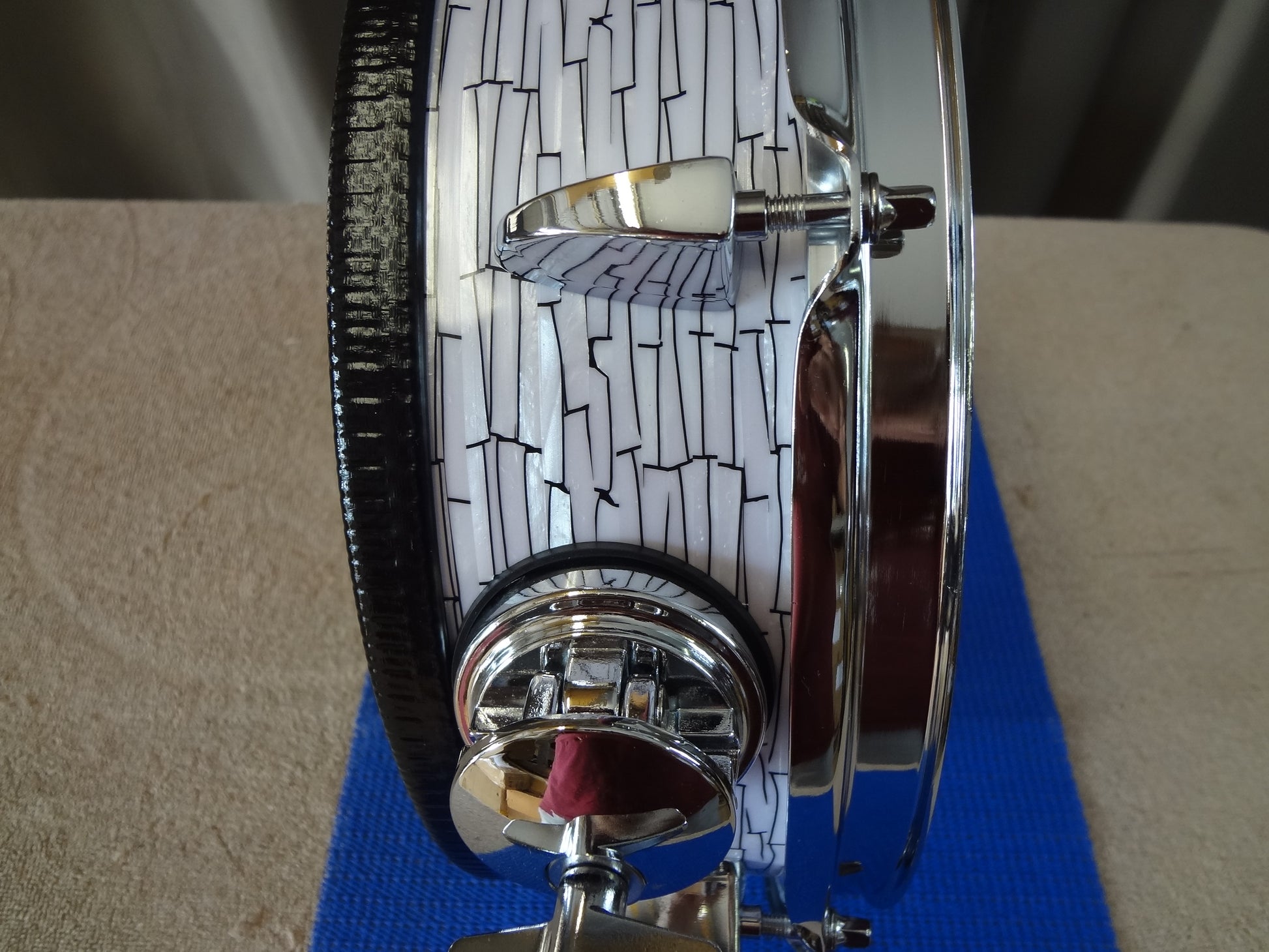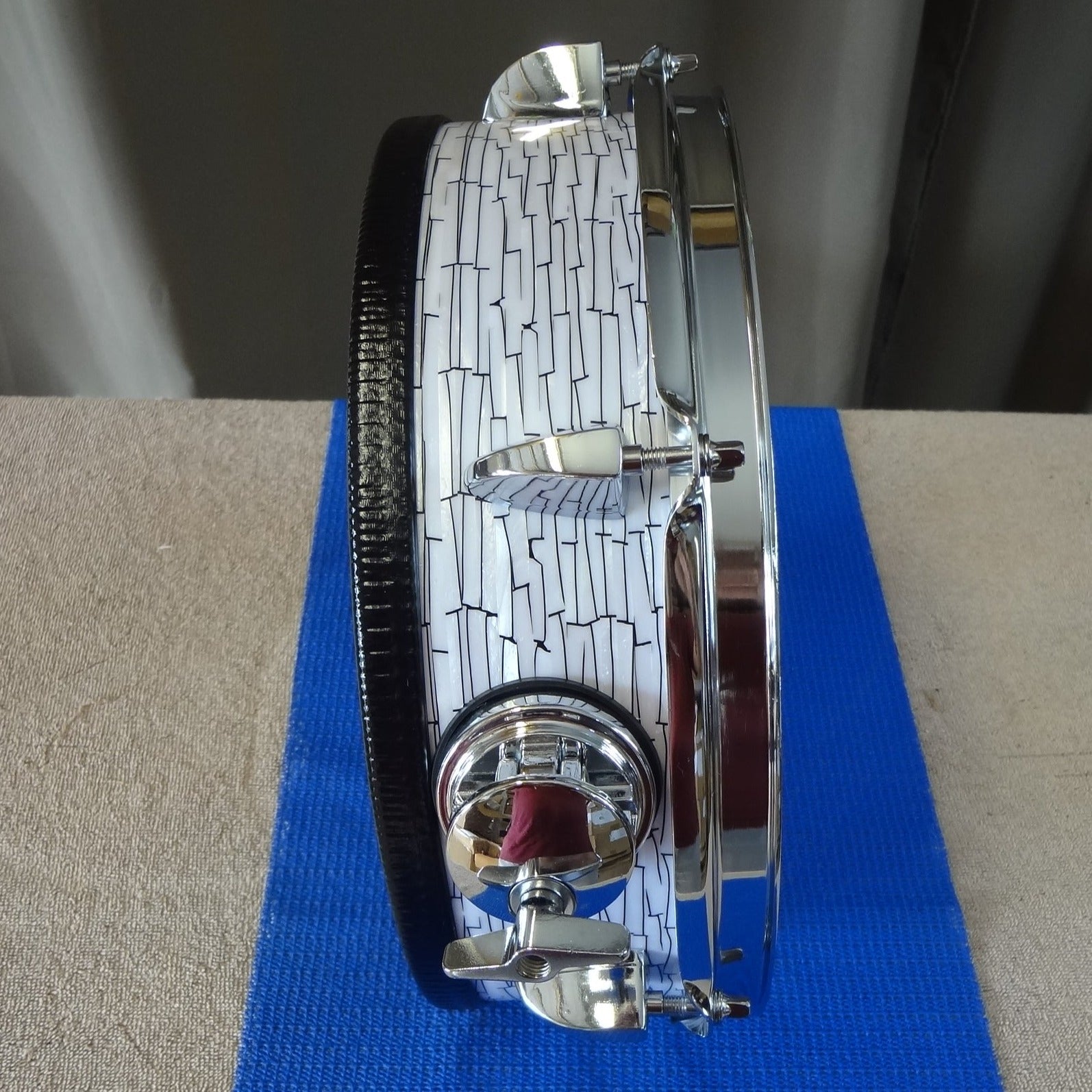 New 12 Inch Custom Electronic Snare Drum - White/Black Etch