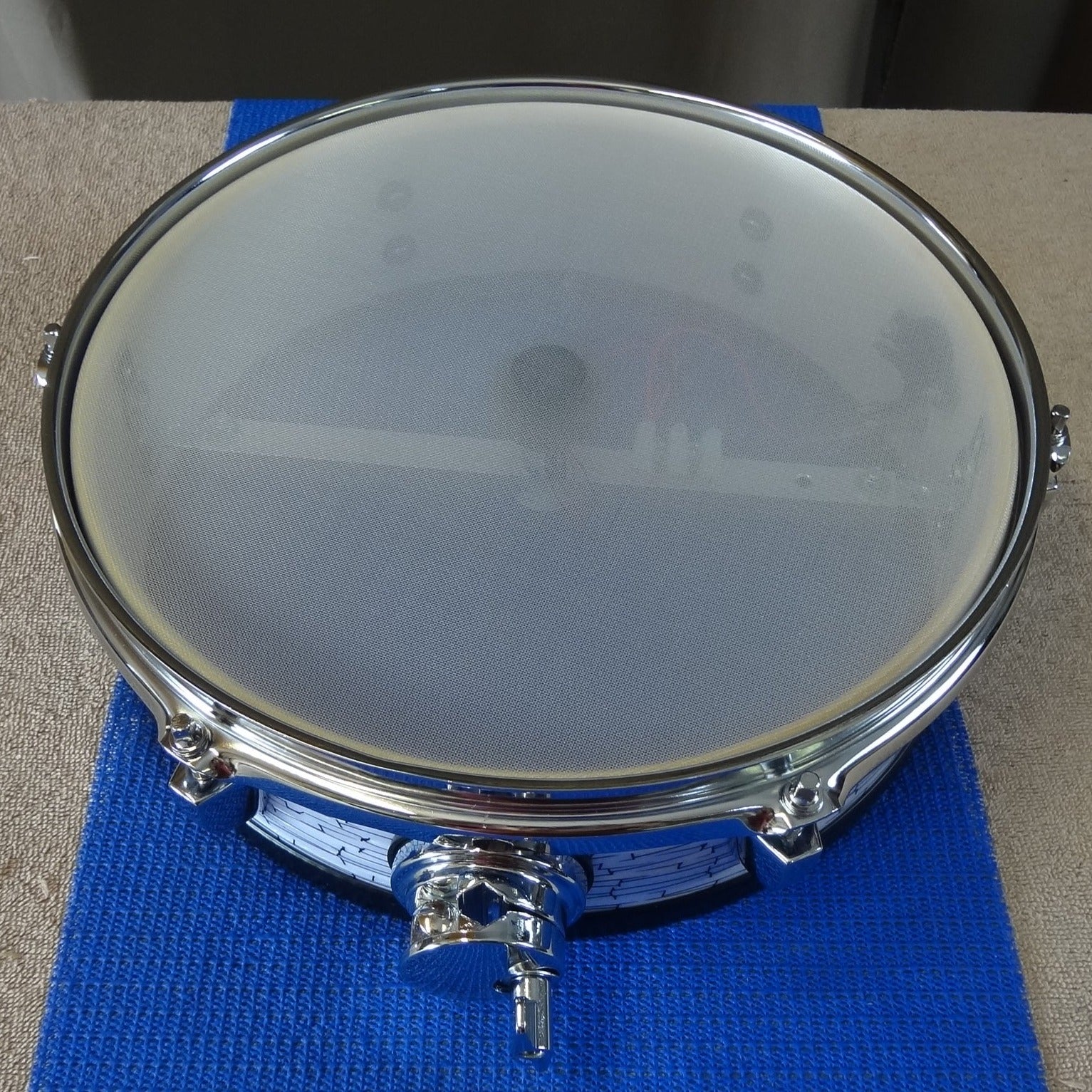 A new 12 inch custom electronic snare drum constructed using a new shell, fittings and electronics.The snare can be used with Roland, Alesis and Yamaha modules as well as most of the other brands in use today.