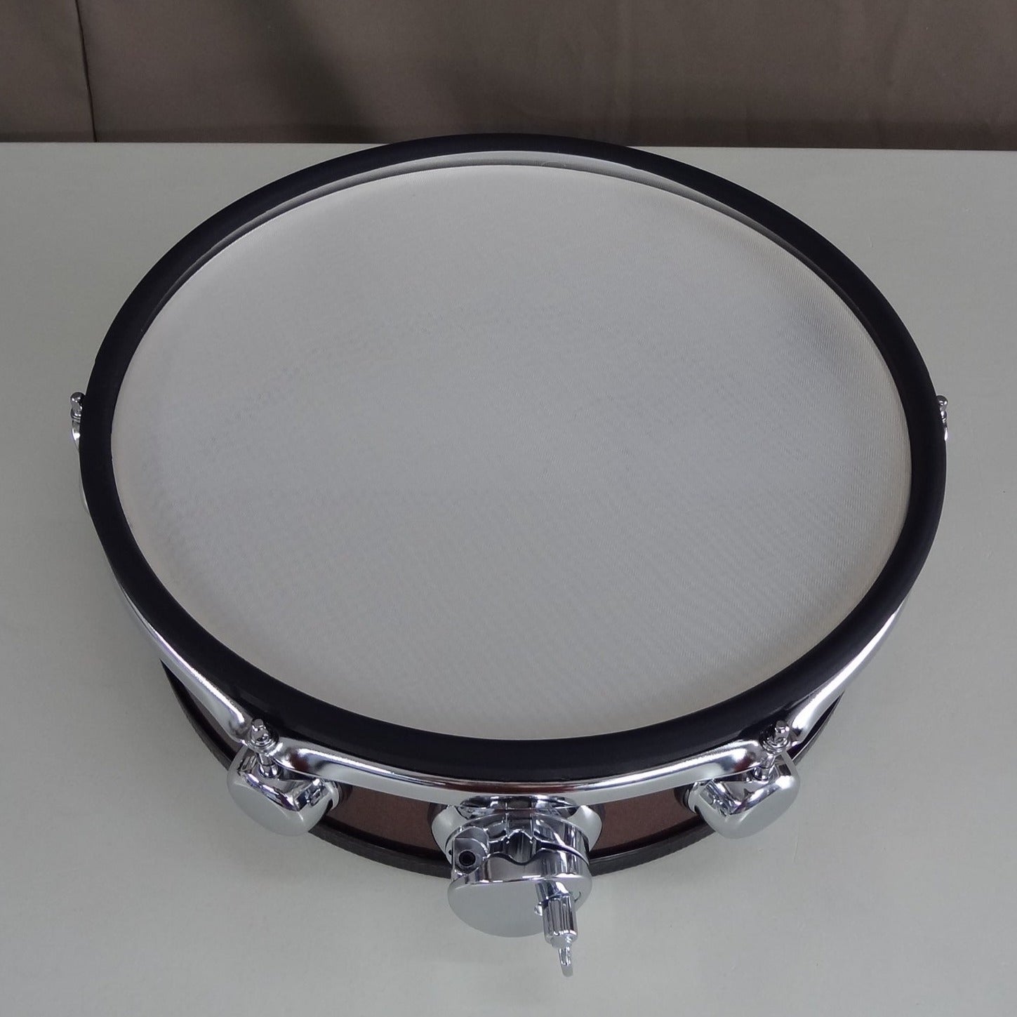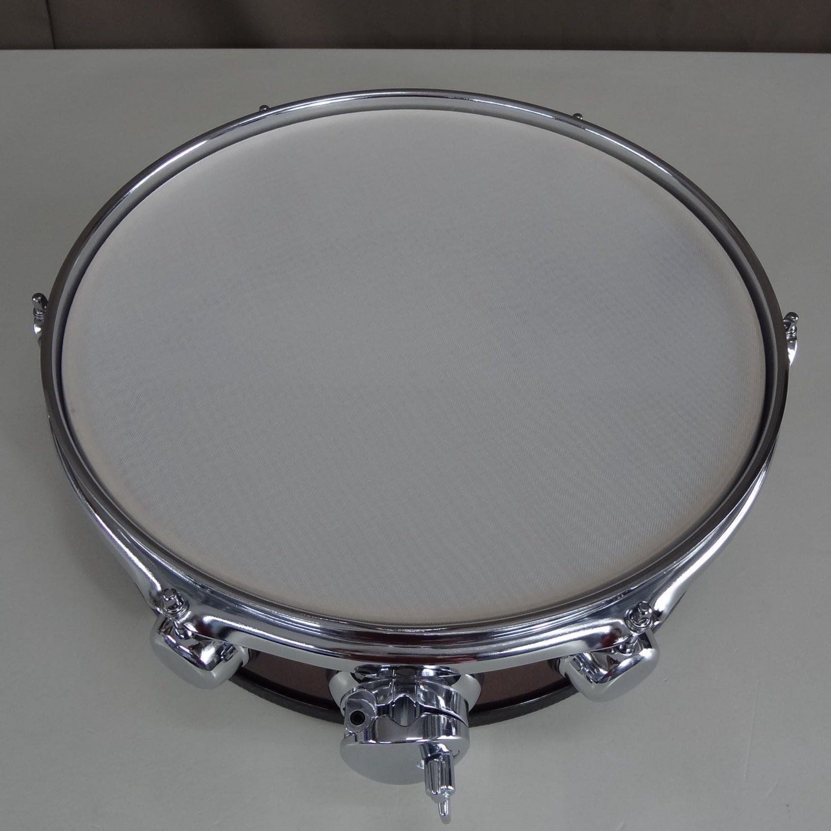 A new 13 inch custom electronic snare drum constructed using a new shell, fittings and electronics. The snare is suitable to use with Roland Alesis and Yamaha modules as well as many of the other brands being used.
