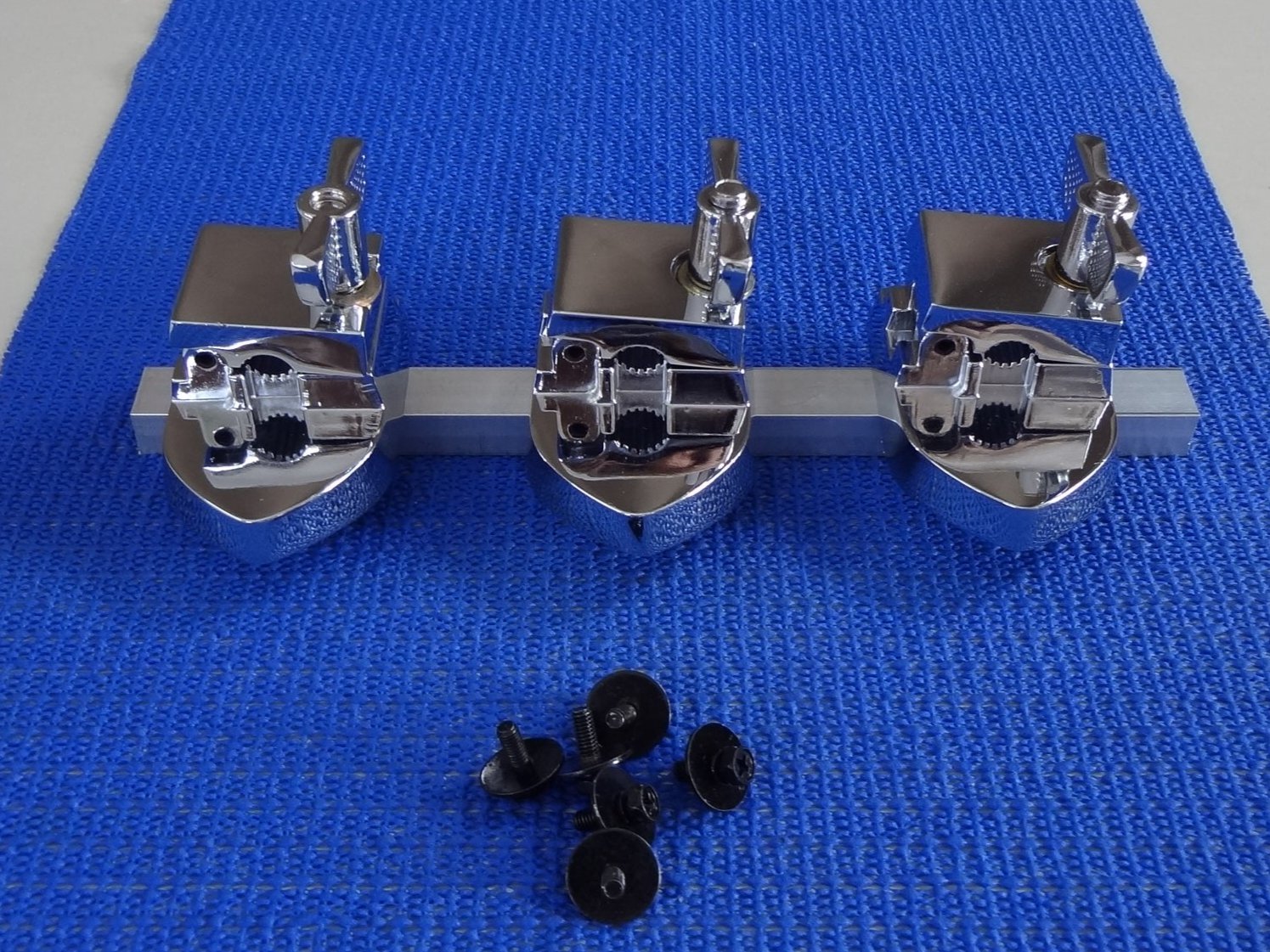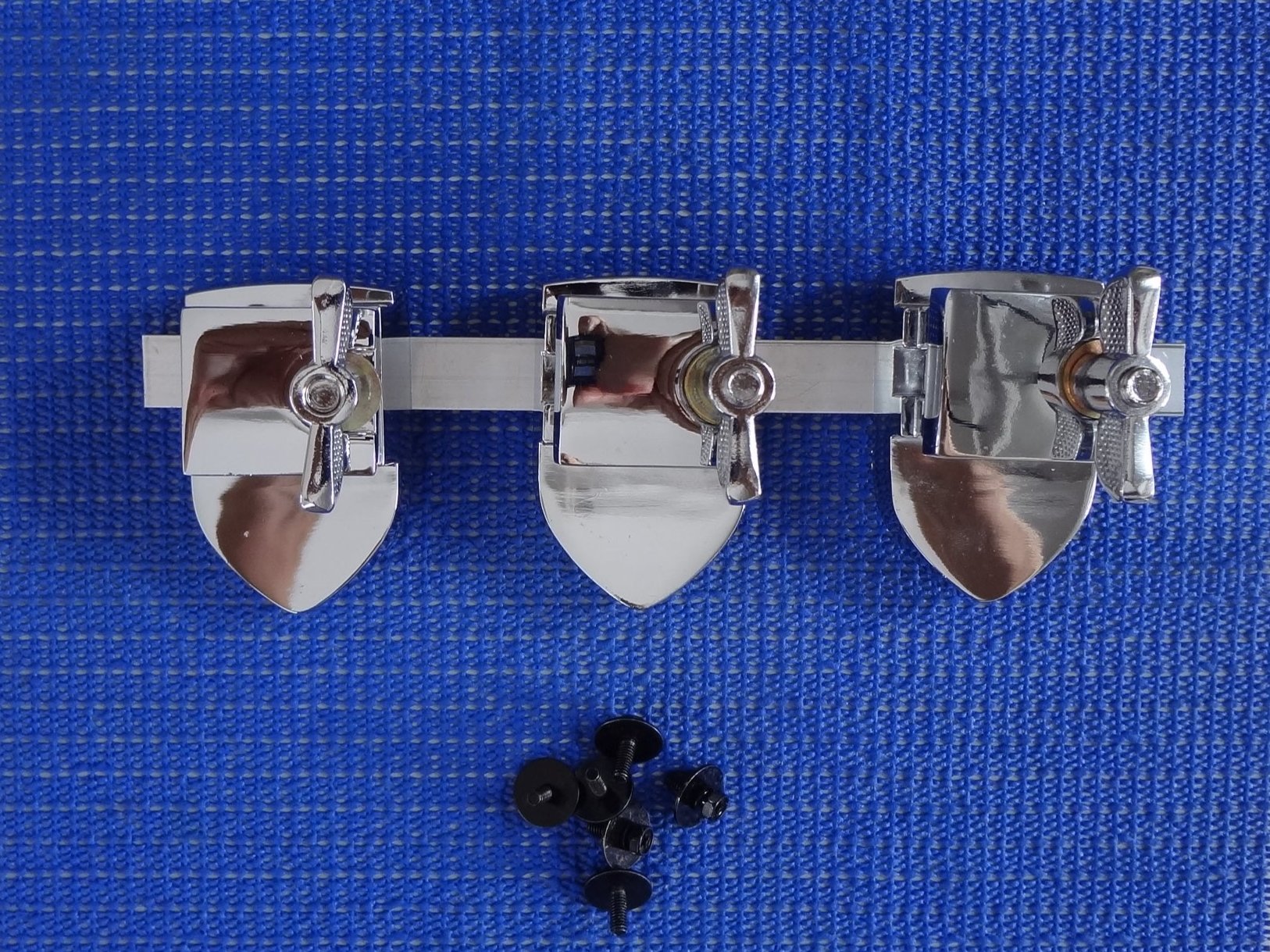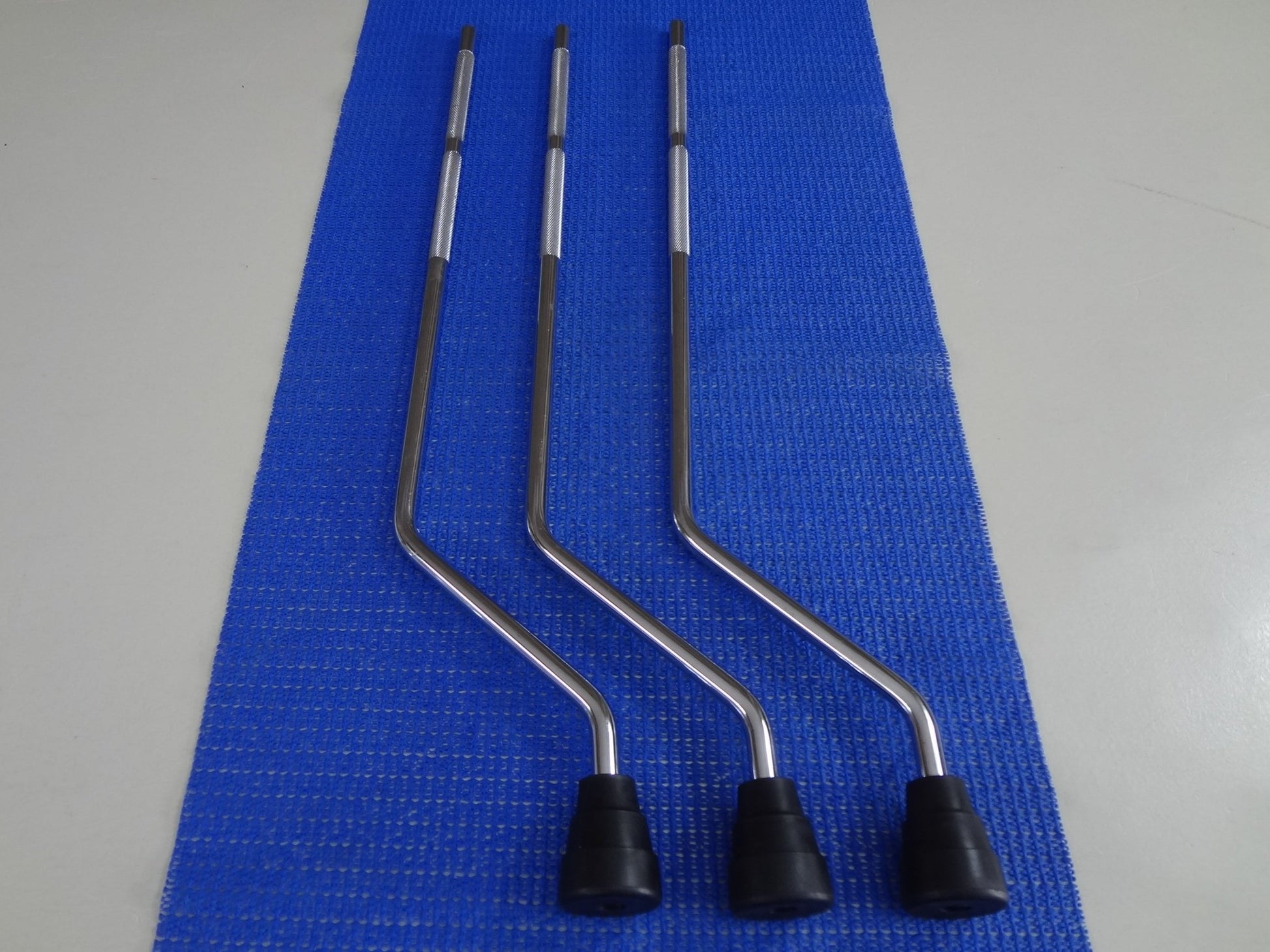 A set of floor tom legs and mounts, three pieces.
