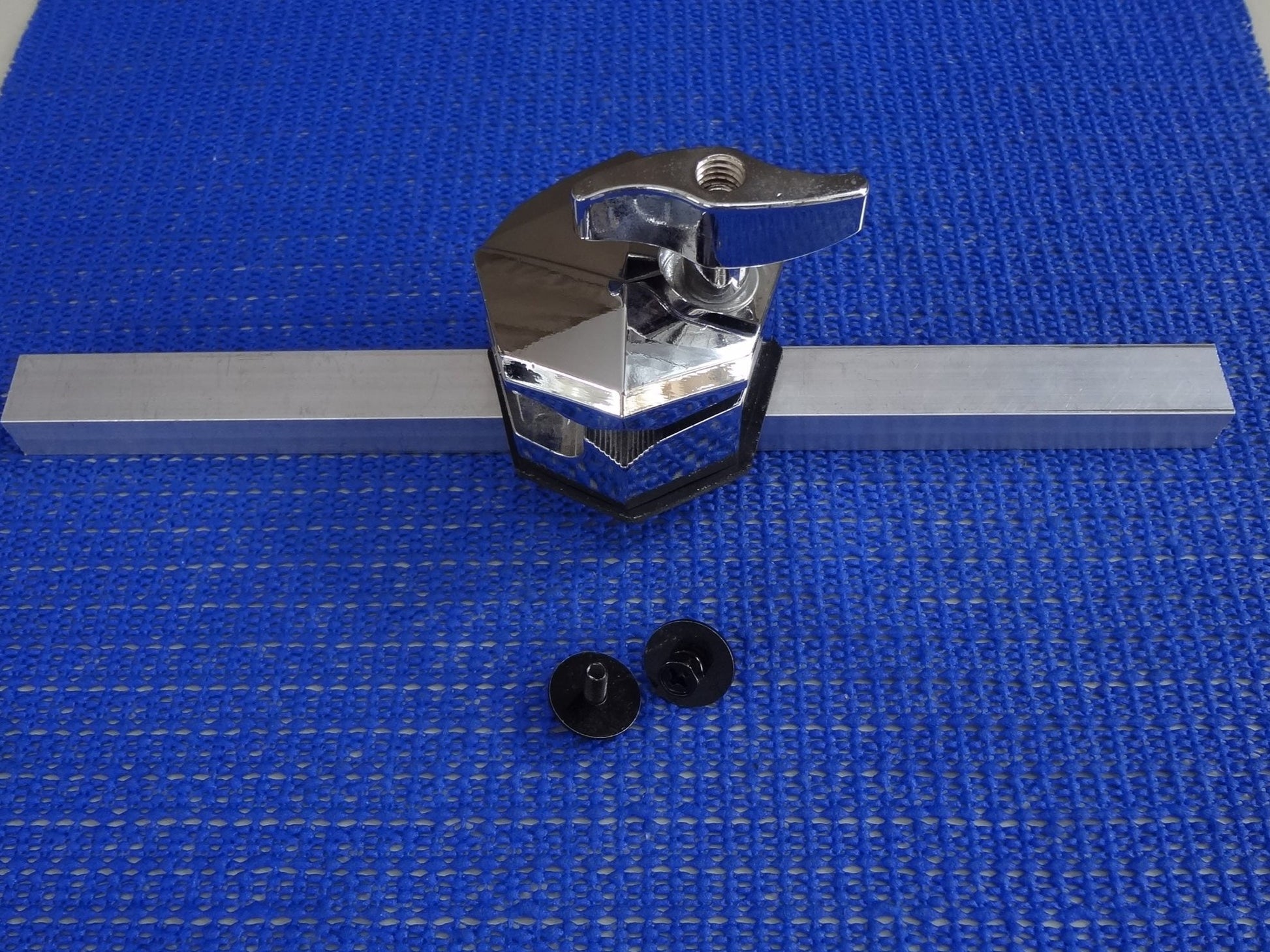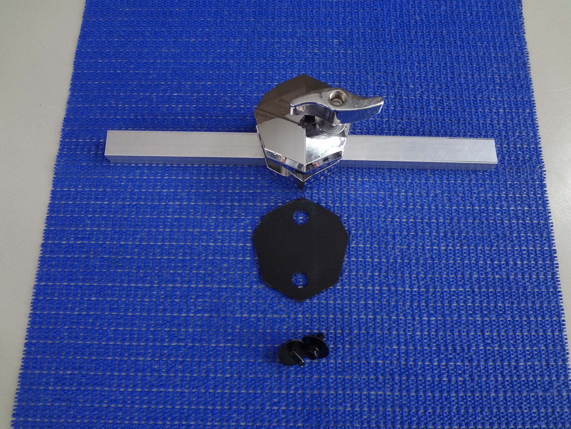 A new set of chrome tom mounts (3) these can be used as mounts for hanging toms, or for floor tom legs mounts.