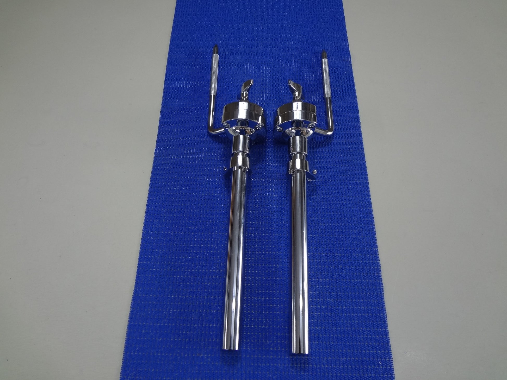 A new pair of chrome tom arm L/rod-long style (2pcs) this is just your basic long style tom mounting arm which is the industry standard on many drum kits new and old.
